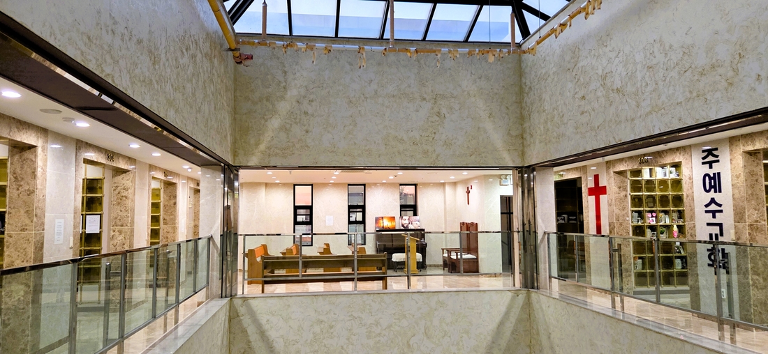 산들로 둘러쌓인 포근하고 조용한 분위기의 봉안당입니다.